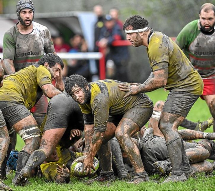 El conjunto guipuzcoano fue mejor que el vizcaino sobre el embarrado césped de Landare. Aunque en la primera parte fueron los gualdinegros quienes dominaron el marcador. Junior Nuu adelantó a los visitantes en el tercer minuto de juego al transformar un golpe de castigo. Los locales no tardaron mucho en empatar con otro lanzamiento a palos por mediación de Anartz Elosegi. Antes de llegar al descanso, Aranguren marcó el ensayo que sirvió para que el Getxo Artea llegase 3-8 por delante en el marcador.