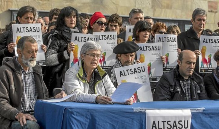 Un millar de vecinos de Altsasu participó ayer en la rueda de prensa en la que ediles, integrantes de la plataforma popular y familiares de los detenidos anunciaron que una movilización con el lema «Altsasu» tendrá lugar en esta localidad de Sakana este próximo sábado a las 13.00, para denunciar que se ha criminalizado a todo un pueblo.
