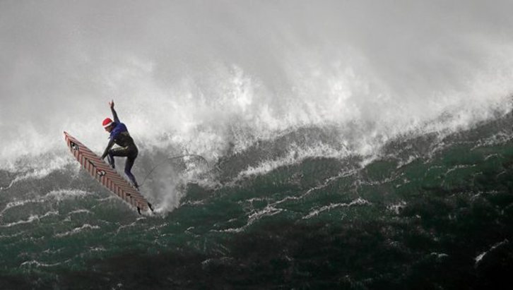 Esta semana se ha disputado la tercera prueba del Big Wave World Tour en Nazaré (Portugal) y sus famosísimas grandes olas no defraudaron. Ganó el australiano Jamie Mitchell y hubo espectáculo del bueno; también caídas y peligro. Muy elocuente fue ayer el zarauztarra Axi Muniain (en la foto) en Facebook: «No sé cómo agradecer a mi hermano Francisco Porcella [surfista hawaiano] por haberme salvado la vida ayer en Nazaré».Francisco LEONG | AFP
