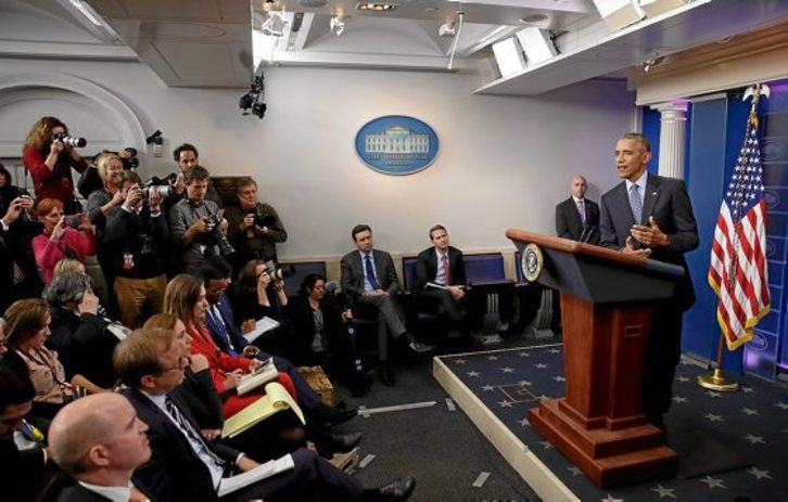 Barack Obama, en su última rueda de prensa como presidente, en la que defendió su legado y sus últimas decisiones, afirmó que se guardará discreción para permitir gobernar a Donald Trump, pero insistió en que tomará la palabra si los valores fundamentales de EEUU –inmigración, libertad de prensa, derecho a voto– están en peligro. Obama, que dejará la Casa Blanca con un 60% de aprobaci&bs;ón, abogó por una «relación constructiva» con Rusia, pero pidió a Trump que no «confunda» el objetivo de las sanciones impuestas a Moscú y no relacionadas con Ucrania.