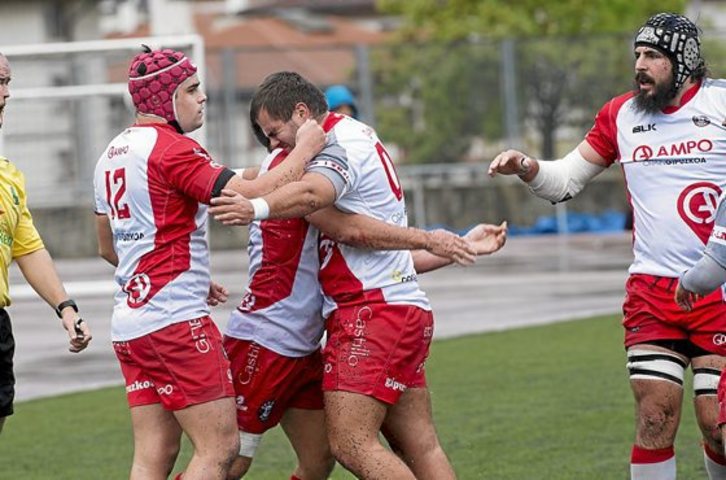Pero la respuesta del conjunto goierritarra fue inmejorable, ya que en el minuto 13 le dieron la vuelta al marcador, con un ensayo de Aldanondo, que transformó Cruz. Los vascos ya mandaban en el luminoso.