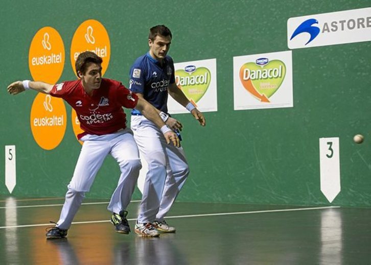 Irribarria eta Rezusta, esaterako, nahiko hotz eta galtzaile hasi ziren lehen tantoetan, eta horri esker urdinak 1-5 eta 4-7 aurreratu ziren. Baina Iker Irribarria apur bat berotu zenean neurketa erabat aldatu zen: gorriek zortzi tanto errenkadan egin zituzten 12-7 aurreratzeko, tartean Aramakoak segidan egindako lau tanto ikusgarrirekin.