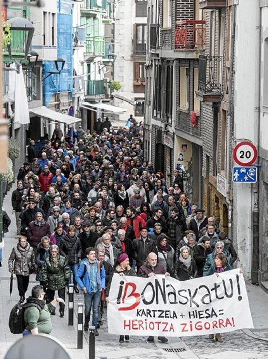 Kartzelak eta hiesak heriotza zigorra suposatzen dutela salatu zuten manifestazio batean atzo Ondarroan, herriko Ibon Iparragirreren egoera larria gogoan. Azken egunetako erasoekin batera gaixotasuna areagotzen ari dela azaldu zuen presoaren familiak eta «herriko talde eragileen indar metaketa» eskatu zuen, “Hitza”-k jasotakoaren arabera.Jon URBE | ARGAZKI PRESS