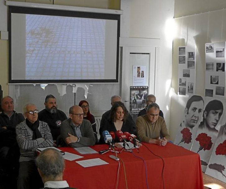 En la rueda de prensa participaron Nerea Martínez, Jacinto Lara, Josu Ibargutxi y Andoni Txasko, que denunciaron la «nula voluntad» de la Justicia y el Gobierno español en actuar conforme a la legislación internacional, perpetuando, de esta forma, la impunidad de quienes cometieron los crímenes durante el franquismo.