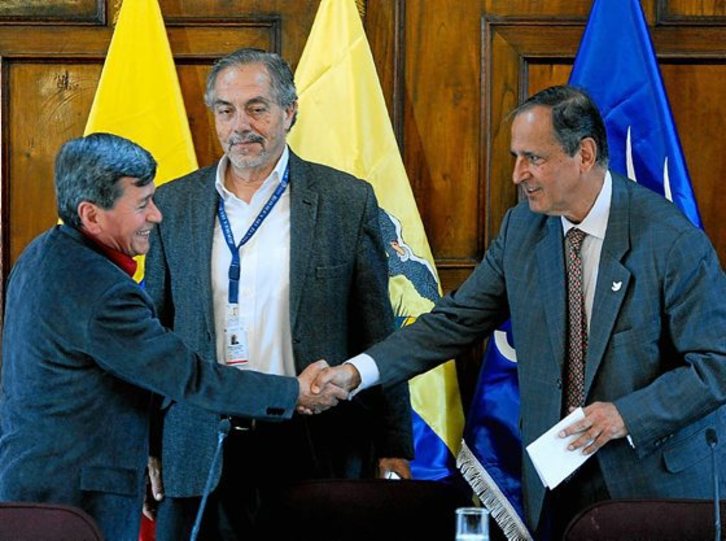 Las delegaciones del Gobierno colombiano y del ELN ofrecieron ayer en Quito su primera rueda de prensa conjunta para informar de los avances producidos desde la instalación de la mesa. Los jefes negociadores de ambas partes, Juan Camilo Restrepo y Pablo Beltrán, respectivamente, destacaron el clima de «entendimiento, respeto mutuo y buen ánimo» que ha permitido acordar la creación de dos submesas que, de manera simultánea, abordarán la forma en la que se plasmará la participación social y la adopción de «dinámicas y acciones humanitarias» que permitan ir rebajando la intensidad del conflicto y, en últimas, crear las condiciones para declarar un alto el fuego y de hostilidades bilateral.