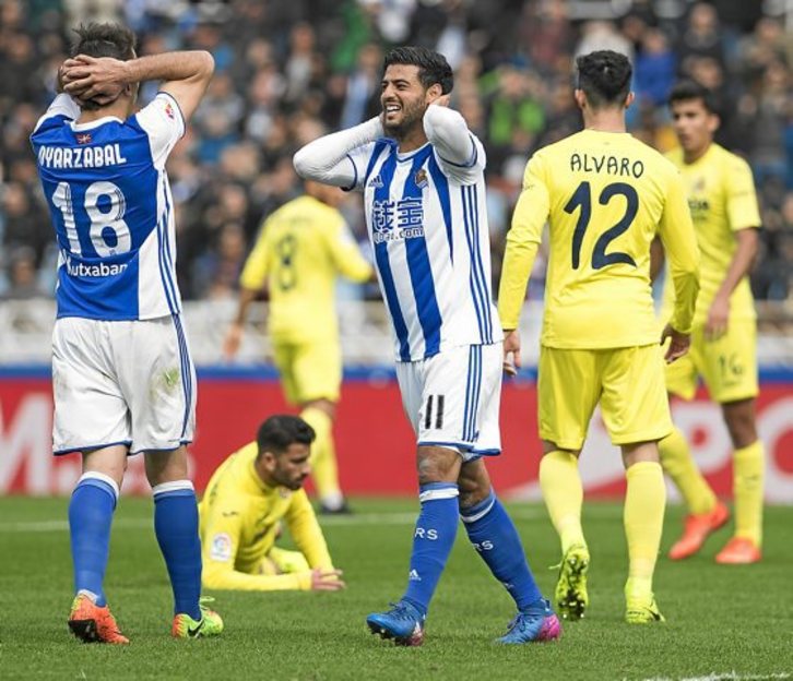 Solo tuvo en el primer tiempo una clara en una falta sacada en el minuto 2 que Raúl Navas cabeceó fuera por muy poco. La Real no solo tenía el balón, cuando lo perdía lo recuperaba enseguida en el campo del Villarreal con buen trabajo sobre todo de Zurutuza e Illarramendi, pero no fue capaz de traducir en ocasiones su dominio absoluto de la posesión y del partido.