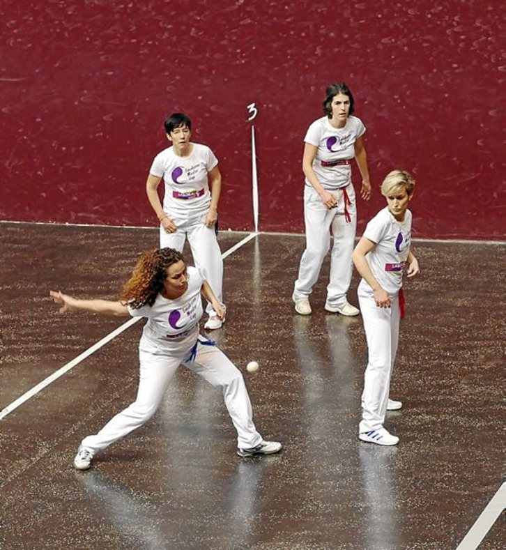 Disputada con pelotas más blandas que las habituales en torneos masculinos, se sucedieron peloteos de gran intensidad y jugadas en los cuadros alegres, con profusión de dejadas y voleas. Como espectadora, la mexicana Daniela Vargas, llegada la víspera desde el otro lado del Atlántico y ya dispuesta a medirse con las pelotaris vascas. En realidad, no resistió la tentación y pegó algunos pelotazos de prueba… a la manera vasca.