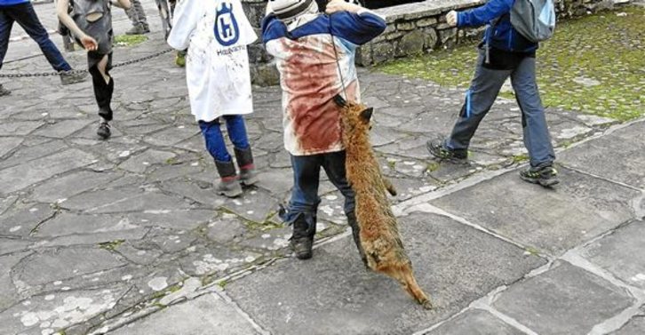 El vídeo de unos niños con el cadáver de un zorro en los carnavales de Zubieta e Ituren ha provocado una fuerte reacción de los animalistas. La Policía Foral investigará los hechos mientras en internet arrecian las críticas contra la fiesta.