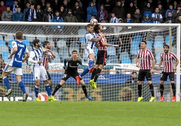 Y si está siendo poco efectivo arriba, al Athletic tampoco está siendo especialmente certero en lo que a defender el juego aéreo en su propio ‘jardín’ se refiere. Ante la Real fue evidente lo que padeció la zaga a la hora de solventar los centros donostiarras, ya fueran tras llegada por banda o de saques de esquina. Por ejemplo, uno de los más destacados, Yeray, el central de menor estatura del equipo, se vio siempre superado, y el poderío de Iñigo Martínez o Navas al subir a rematar quedó patente, lo mismo que un par de testarazos de Juanmi, el más peligroso en el que se lució Kepa. Un dato revelador: la Real conectó siete cabezados en el área rojiblanca; el Athletic solo uno en la de Rulli.