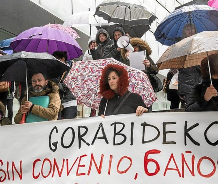 Alrededor de medio centenar de trabajadores de la asociación vizcaína de apoyo a las personas con discapacidad intelectual, Gorabide, se concentraron ayer ante la sede de la organización en Bilbo para exigir mejoras en su convenio, que, según destacaron, se encuentra congelado desde hace seis años.