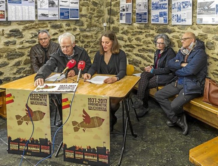 La presentación de la iniciativa «1937-2017 Oroimenetik askatasunera!» coincide con el aniversario de la matanza de Azazeta y del bombardeo de Gernika, dos ejemplos de la represión fascista en Euskal Herria. «Pero 80 años después, el pueblo que quisieron destruir sigue en pie, y queremos seguir dando pasos en la construcción de nuestra nación».
