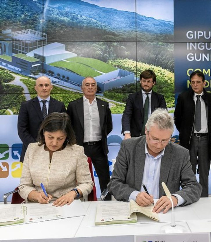 La rúbrica, aplaudida por los representantes de las empresas que forman la UTE Ekondakin, tuvo lugar apenas cuatro días después de que la propia institución foral desestimara el recurso interpuesto por FCC contra la adjudicación del contrato de ejecución y explotación durante 35 años a la UTE liderada por Urbaser.