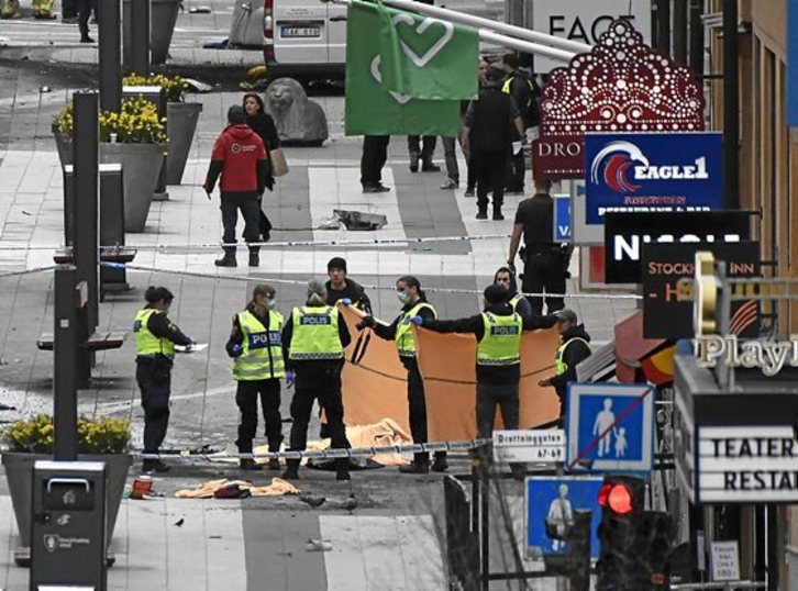 Al menos cuatro personas murieron y quince resultaron heridas atropelladas por un camión que se lanzó contra los peatones en pleno centro de Estocolmo. Las autoridades calificaron el ataque de «atentado terrorista» y buscaban al conductor del camión que se dio a la fuga, aunque informaron de la detención de una persona.