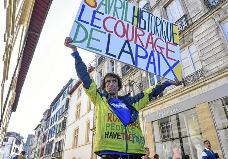 Junto a ella, Daniele Unhassobiscay y Maite Larrasa se encargan de repartir y organizar las tareas asignadas a cada voluntario: encargarse de la seguridad durante los diferentes actos, repartir información y las manos que caracterizaron el acto de las 15.00, controlar el tráfico en la zona, atender a las personas que intentaban ubicarse en ese área céntrica, acreditar y dotar de dossieres a los más de 200 periodistas que acudieron a la capital de Baiona, realizar labores de traducción (castellano, euskara, francés e inglés), montaje y desmontaje... «Aquí estamos personas de diferentes procedencias e ideologías. Me sumé a está iniciativa porque me parecía necesario», declaraba Unhassobiscay.