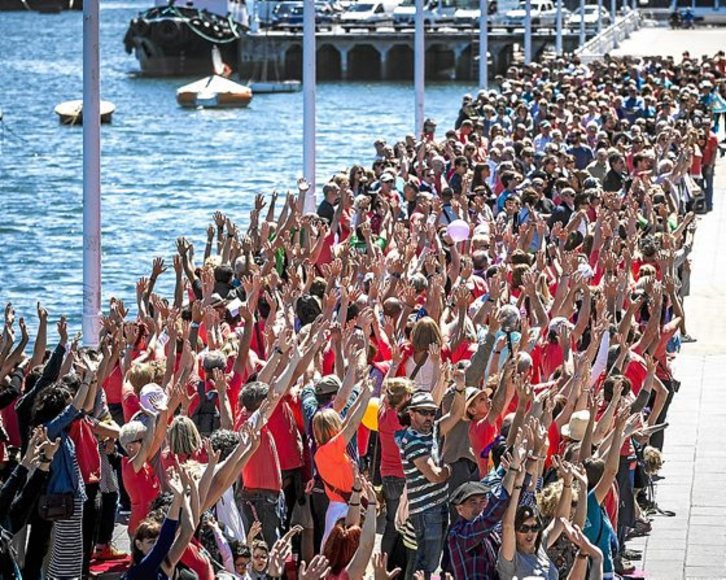 Entretanto, Gure Esku Dago sigue promoviendo diferentes iniciativas a favor del derecho a decidir. Ayer mismo, un mosaico escenificó en Portugalete el anhelo de un amplio sector de la sociedad vasca de poder decidir sobre el futuro de Euskal Herria. Decenas de personas de Ezkerraldea formaron un mosaico con el lema “Ezkerraldeak Erabaki”.
