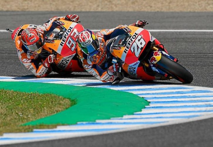 Dani Pedrosa aguanta la presión de Marc Márquez