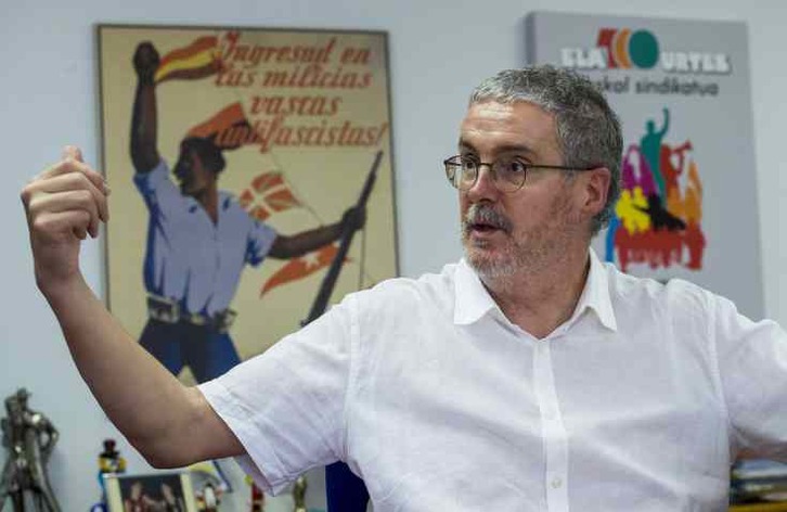 Nacido en Mañueta (Araba) en 1959, con 42 años de militancia a sus espaldas, «siempre en el mismo sitio y sin estar aburrido», encara su tercer mandato al frente de ELA en tiempos difíciles, reivindicando que «ser sindicalista es hacer política».
