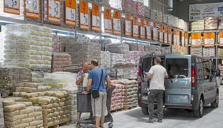 El trabajo se intensifica estos días en Bricomart Sestao. Comentan los responsables del almacén que el buen tiempo anima a realizar la obra, ya que trabajar ahora comporta menos riesgos que con mal tiempo, tanto a nivel de la seguridad de los trabajadores como por las interrupciones que puede conllevar, y que es más habitual que se quieran hacer obras antes de las vacaciones, ya sea reformar el porche, pintar la casa... De hecho, según indica Azpitarte, «aquí hay mucha tradición de trabajar con madera» y se están vendiendo «mucha viga laminada» para porches en baserris... tanto para profesionales como particulares, que encuentra en Bricomart diferentes medidas.
