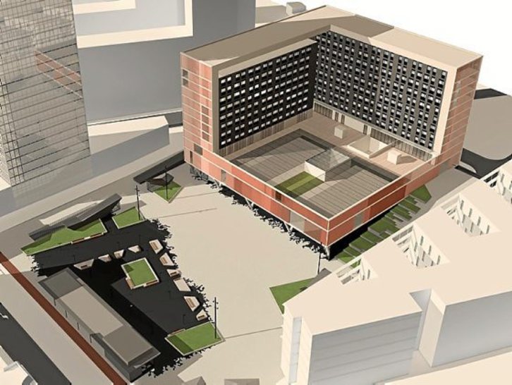 El soterramiento generará una plaza en la superficie de 12.500 metros cuadrados en la que se alzará un edificio en forma de ‘‘ele’’ que contará con 9 plantas de hotel, una residencia de estudiantes, un gimnasio, una zona comercial y los servicios propios de la estación, como las taquillas.