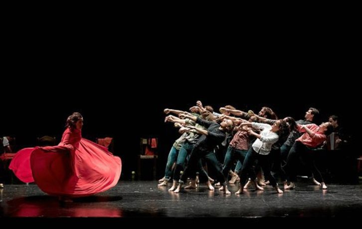 Obra larunbatean estreinatuko dute Zarauzko Kaleko Antzerki Jardunaldien barnean eta, aipatu kontzeptu eta sinbolismoei helduko badiete ere, ikuskizunaren asmoa “sagarraren historia” errepasatzetik harago doala azaldu du Intxaurragak: «Gure istorio propioa kontatzen goazen neurrian sartuko ditugu sagarrak bere historian zehar izan dituen esanahi batzuk». Miren Gojenola izango da antzezpenaren zama eramango duena, eta harekin batera ariko dira Oinkariko hamazazpi dantzari. Taldea osatzeko, zuzeneko musika ere jarriko dute Iñaki Dieguez (eskusoinua) eta Iker Telleriak (perkusioa).
