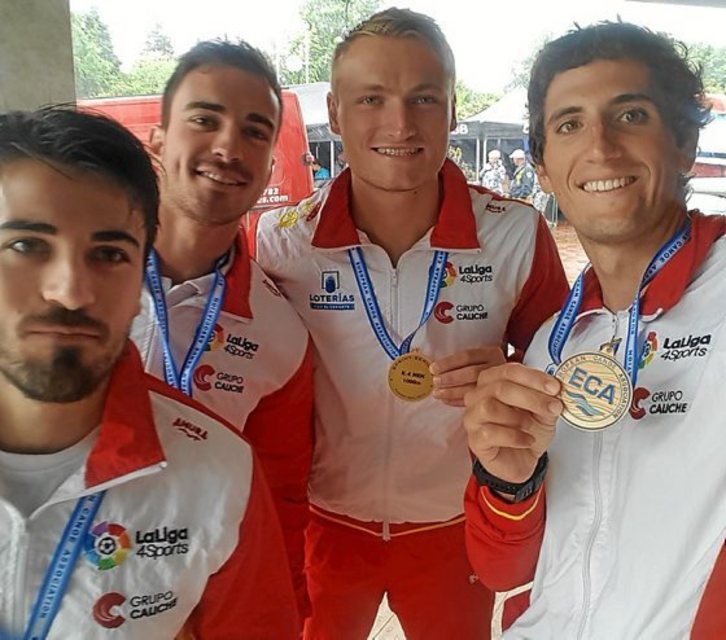 El palista guipuzcoano se marcha del Campeonato de Europa con el oro logradoayer junto con Cubelos, Cabañín y Cooper, y el bronce del sábado en K-2 1.000.