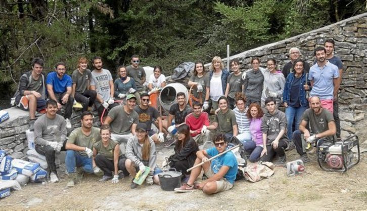 Olatz Retegi comanda un equipo de 25 personas que trabajan en los muros del Cementerio de las Botellas. «La mayoría son estatales, aunque hay mexicanos, taiwanesas y un italiano», explica. La brigada de jóvenes centra sus esfuerzos en consolidar las paredes que demarcan la zona de enterramientos, que en su día fue devorada por la vegetación. Bajo sus pies yacen 86 personas, después de que los restos de otras 44 se hayan entregado a las famililas.