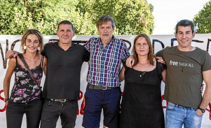 Ostegunean Rafa Diezen kaleratzeak utzitako irudien artean honakoa nagusitzen da: berarekin batera zigortutako Miren Zabaleta, Arnaldo Otegi, Sonia Jacinto eta Arkaitz Rodriguez besarkatu zituen berriro. 2009ko urritik ez ziren elkarrekin kalean; gero espetxealdiaren lehen hilabeteetan Estremeran batera egon ziren, eta, 2011ko udan Auzitegi Nagusiaren aulkian, baina ez kalean eta ez aske. Aritz LOIOLA | ARGAZKI PRESS