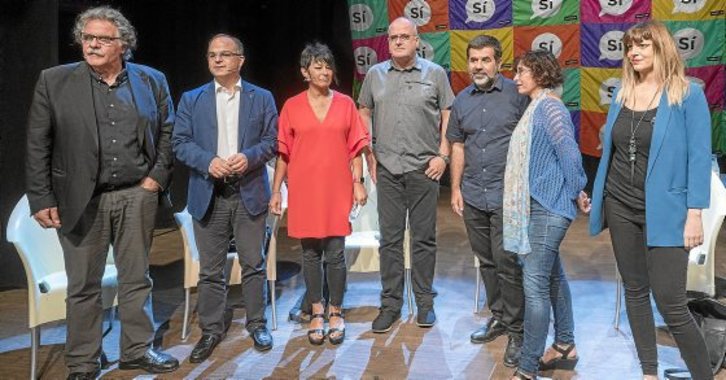 Todas las miradas están puestas en Catalunya, no solo por lo que suceda de aquí al 1 de octubre, sino por lo que pueda desencadenarse después. Ayer, representantes del ámbito político y social de Catalunya y Euskal Herria se dieron cita en el Kafe Antzokia de Bilbo en un acto de apoyo al referéndum de independencia. Figuras de peso como el portavoz del Govern, Jordi Turull, el portavoz de ERC en el Congreso español, Joan Tardà, y el presidente de la Assemblea Nacional Catalana (ANC), Jordi Sànchez, estuvieron acompañadas de los portavoces de EH Bildu y PNV en el Parlamento de Gasteiz, Maddalen Iriarte y Joseba Egibar, respectivamente, y la portavoz de Gure Esku Dago Zelai Nikolas.