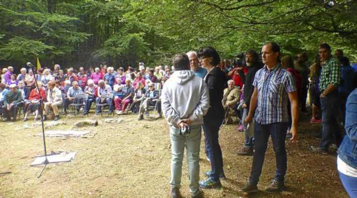 Fuera por el nuevo sistema que se ha creado para organizar el evento o como respuesta al ataque que se detectó ayer en la escultura conmemorativa junto a la sima, lo cierto es que varios de los presentes aseguraron a GARA que ayer hubo «más gente que nunca» en el homenaje a los desaparecidos en las simas de Urbasa, que se celebra anualmente junto a la sima de Otsaportillo.