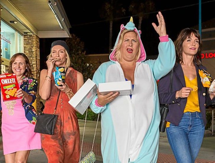 Otro elemento indiscutiblemente diferencial de la comedia gamberra femenina es el diseño de personajes, que en “Fun Mom Dinner” queda de nuevo muy de manifiesto. En este tipo de películas las actrices con un físico corriente, que las dejaría fuera en cualquier casting del Hollywood más convencional, encuentran papeles a su medida. Es un poco como lo que sucede con las modelos de pasarela que no entran en la talla 34. Y si no que se lo digan a Bridget Everett, que ejerce como la grandullona del grupo de amigas. Hasta la fecha solo la había visto como secundaria, pero aquí demuestra su sobrada capacidad estelar y sentido del humor, pues sabe reírse de sí misma y no le importa disfrazarse de mascota.