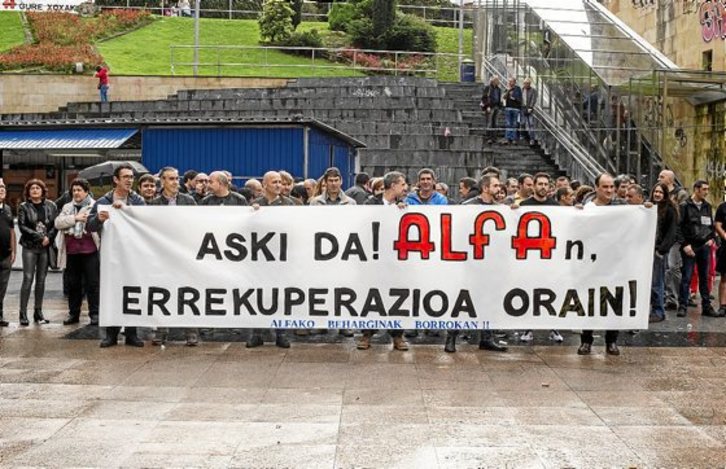 Trabajadores de Alfa salieron a la calle para denunciar la «nula intención» de la dirección de negociar la recuperación de sueldos de la plantilla. Con el salario congelado desde 2009 y una reducción «de entre un 10% y un 30%» en 2012 cifran en un 22% la pérdida sufrida. En 2015 «descubrimos atónitos que tres directivos se repartieron» el montante de la venta de Gol. «No hay dinero para salarios, sí para tres de sus directivos».