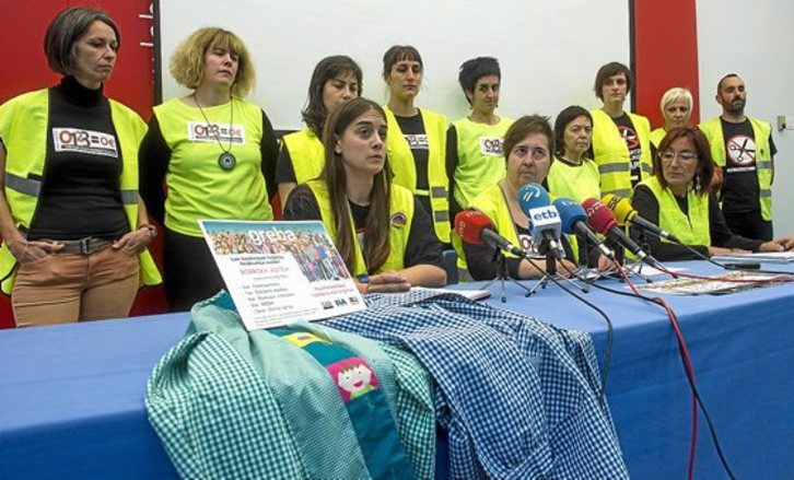 Delegadas y delegados de los tres sindicatos comparecieron ayer ante los medios, en Bilbo. Como recogió Europa Press, criticaron que tanto el Gobierno de Lakua como la gerencia del Consorcio Haurreskolak, «a pesar de hacer un ejercicio formal de convocar la mesa de negociación, no han propuesto ninguna medida concreta que sirva para dar la vuelta» a la «grave situación» que padecen. Por ello, solicitan un proceso de negociación «real» que mejore las condiciones laborales.