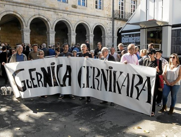 «Por motivos políticos pintó Picasso el cuadro, por motivos políticos viajó por todo el mundo para denunciar la guerra, y no fue trasladado a España hasta la muerte de Franco por motivos políticos. Por motivos políticos lleva 25 años en el Reina Sofía y por motivos políticos pedimos que se traslade definitivamente a Gernika que es donde debe estar», subrayó antes de recordar que en Gran Bretaña los cuadros que muestran bombardeos y ataques se exponen en las ciudades que los han padecido, como el caso Birmingham.