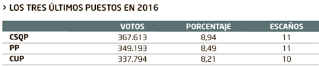 Es una pugna secundaria, pero tiene su importancia (y su morbo) ver quién quedará a la cola de las elecciones, puesto que, en 2015, tras el ascenso de la CUP, quedó mucho más apretado de lo que cabía esperar. Será relevante observar si los cuperos logran superar al PP, lo que significaría que el partido de gobierno en España es la última fuerza en el Parlament. Cuestión no menor. De forma paralela, también está por ver la pugna dentro de la izquierda entre la CUP y los Comuns, cuya equidistancia todavía está por ver cómo se traduce en las urnas. El 27S solo 30.000 votos separaron a la Esquerra Independentista de CSQP.