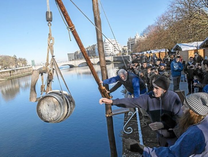 Goizeko zortzi eta erdiak zirela abiatu ziren Astigarragatik mahoizko alkandora eta prakak jantzita, txapela buruan, sagardogileak egurrezko ala gainean. Bi orduren buruan Donostiara heldu eta sagardoz betetako lau upelak eta barazki freskoak lurreratu beharra zuten. Antzinako usadioak edo egiteko moduak berreskuratu, ondare hori zaindu eta ezagutarazi. Asmo horrekin berreskuratu zuen Sagardogileen elkarteak, Albaola Itsas Kultur Faktoriak eta Lizeaga eta Petritegi sagardotegien laguntzaz, orain lau urte ibaian barrena baserrietatik sagardoa ekartzeko ekimena. Ondoren Bulebarrean apuruari hasiera ematen zaio. Apurua: upelak lehenengoz ireki eta dastatzeari deitzen zaio horrela; urtarrileko irekiera ofizialaren aurretik egiten zen dastatzea da, hain zuzen.