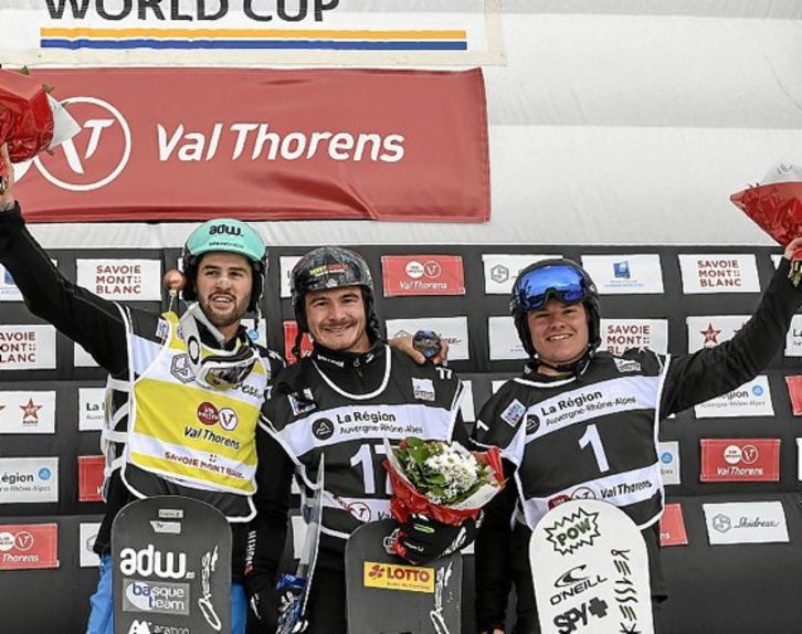 El donostiarra Lucas Eguibar sigue con buen pie su preparación para los Juegos de Invierno de PyeongChang (Corea del Sur) y ayer acabó tercero en Val Thorens (Estado francés), prueba valedera para la Copa del Mundo de boardercross de snowboard.