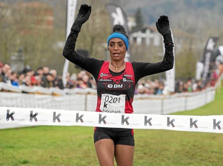La atleta afincada en Donostia cumplió así con todos los pronósticos de la LXIV edición del Cross Internacional de Zornotza, uno de los mejores del continente y entre los más destacados del circuito internacional. Las dos principales pruebas del amplio programa de carreras tuvieron que disputarse sobre un trazado muy embarrado, aunque con ausencia de lluvia, lo que fue un cierto alivio para los participantes.