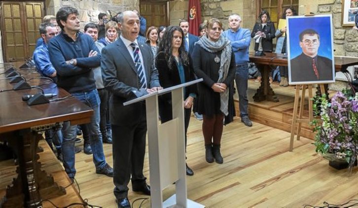 Todos los grupos del Ayuntamiento de Zarautz (en la foto) participaron anoche en el acto de recuerdo al edil del PP José Ignacio Iruretagoyena, muerto por la explosión de una bomba de ETA hace ayer 20 años. Se intentó consensuar hasta el final una declaración, pero finalmente el texto leído por el alcalde no lleva la firma de EH Bildu al no tenerse en cuenta sus aportaciones. Acudieron la viuda y los dos hijos de Iruretagoyena, que fueron arropados por toda la Corporación.