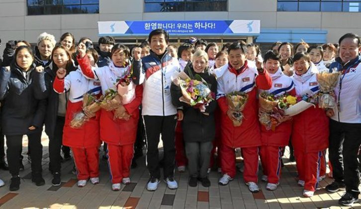 Los primeros deportistas norcoreanos que participarán en los JJOO de Invierno de PyeongChang llegaron ayer a Corea del Sur tras el acuerdo alcanzado entre ambos países. La avanzadilla la formaban doce jugadoras de hockey sobre hielo y tres técnicos que, tras cruzar el paso fronterizo occidental a través de la frontera militarizada, fueron recibidas por otra veintena de jugadoras del Sur. Después, todas las deportistas posaron juntas.Song KYUNG-SEOK | AFP