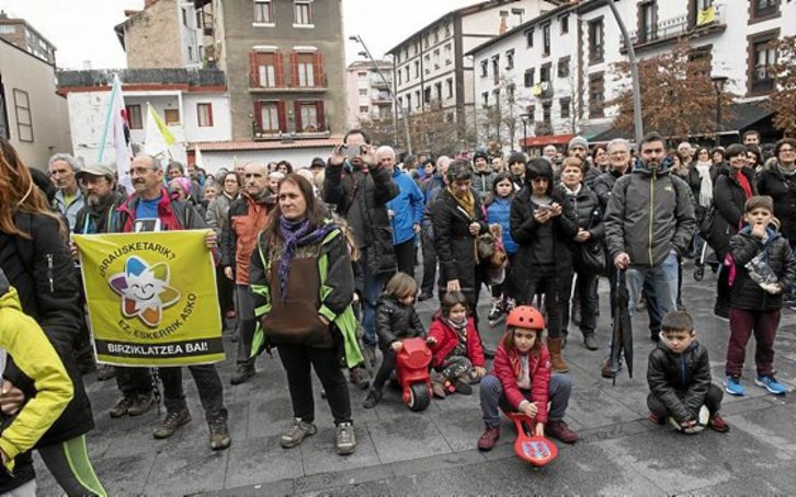 Después de la explicación, todos juntos bajaron a la plaza de Lasarte en manifestación bajo el lema “Goi tentsio linearik ez! Erraustegia gelditu”. Durante el acto tres alumnos de la Ikastola Landaberri de Zubieta subieron al escenario para expresar su preocupación, pues el centro se encuentra a tan solo 500 metros de las obras de la incineradora. «Queremos pedir a los responsables que no jueguen con nuestra salud», manifestaron.