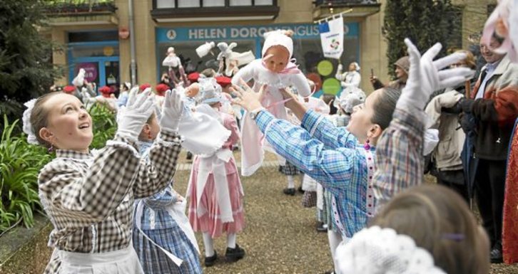 Ederra da haur, gazte eta helduak, neska eta mutilak, elkarrekin gozatzen ikustea. Badira lau belaunaldiek jaian parte hartzen duten familiak. Musika eta dantza animatuak dituzte giro hotzaren kontrako antidoto. Txikienak gibeleko aldean doaz eta ongi eusten diote erritmoari, tarteka arreta galdu eta pixka bat atzeratzen badira ere.