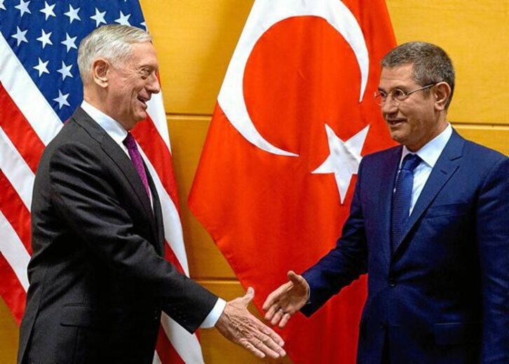 Turquía, por su parte, expresó «enérgicamente sus preocupaciones sobre la situación en el norte de Siria», según Stoltenberg, que celebró que «Turquía y EEUU [hayan hablado] directamente» tras días de tensión, si bien la reunión, en la que el secretario de Defensa, Jim Mattis, recibió fríamente a su par turco Nurettin Canikli, terminó sin declaraciones.