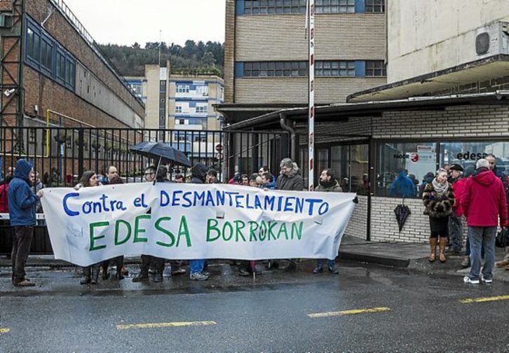 Trabajadoras y trabajadores de la empresa Edesa se concentraron ayer a las puertas de la planta de Basauri para denunciar la visita de un grupo de personas interesadas en comprar la maquinaria para la fabricación de termos que se utiliza en esta factoría.