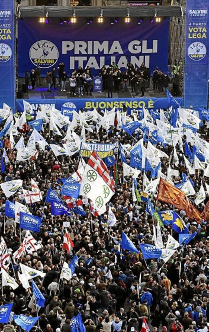 Uno de los actos más concurridos de la ultraderecha fue el de Matteo Salvini, líder de la Liga Norte y aliado en las elecciones de Forza Italia de Silvio Berlusconi y de Fratelli d’Italia. Los sondeos dan a esta alianza un primer puesto en los comicios con el 30% de los votos, pero la nueva ley electoral hace incierta la formación de gobierno.