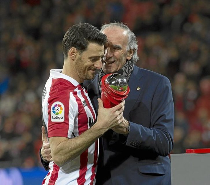 En el club de su vida. El Athletic. «El Athletic es una gran familia. Así, de verdad. Es un club que se vive en cada casa, sobre todo en Bizkaia, pero también en muchos sitios de Euskal Herria. Es segundo equipo de gente de otras muchas ciudades que tiene la diferencia de que compite durante toda su historia, que son ya 120 años, de una manera muy cercana a cuando surgió el fútbol. Y eso le da un valor añadido a lo que hace. Explicándolo así se quedarían un poco sorprendidos, pero yo les diría que vengan aquí y nos conozcan. Es la mejor manera de entender el Athletic y el sentimiento Athletic», se explaya para explicar qué es este club.