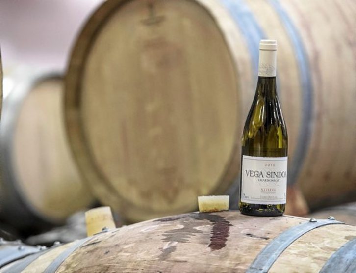 La botella no resultaba nada fácil de distinguir. En su interior había un blanco chardonnay envejecido en barrica de roble francés. Eso no cambia, pero la etiqueta sí. De la embotelladora de Añorbe salen las botellas de blanco desnudas. Y, según para donde vayan, les estampan en el último momento el nombre de “El Rincón de Nekeas” para el mercado local o el más engolado “Vega Sindoa” destinado a aquellos que cruzan el Atlántico. Este último es el oscarizado.