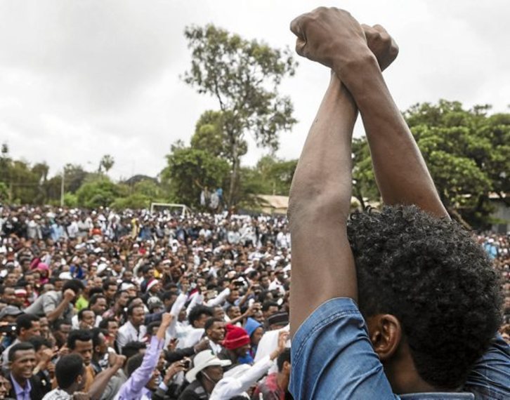 Esta vez ni el olvido mediático ni la represión policial que se tradujo en la imposición de un estado de emergencia durante diez meses y la masacre de más de cincuenta personas en plena celebración religiosa en Bishoftu lograron detener la movilización del pueblo oromo. Al grito de «reforma, reforma, reforma», el movimiento Qeerroo –literalmente «jóvenes solteros», en la lengua de la Oromía– fue incrementando su respaldo social. «Lo que estamos viendo en los últimos tres años», continúa Betsate, «es que la gente parece haberse cansado de la mala gobernanza. Los etíopes son gente muy religiosa, que no sale a protestar por cualquier cosa, pero se han dado cuenta que tienen que hacer algo más que esperar la intervención divina. Por eso no sólo están en la calle protestando, sino que han organizado huelgas incluso durante el estado de emergencia».