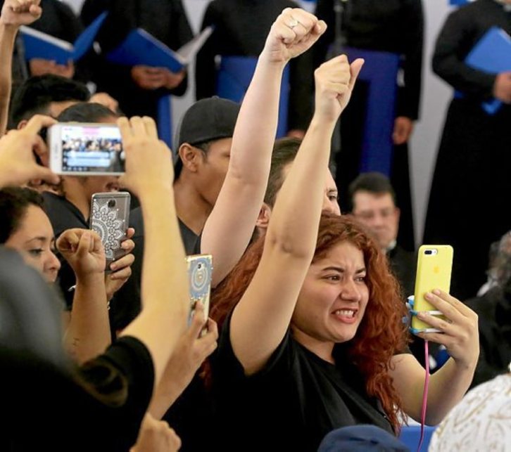 El presidente recordó que «los muertos están de todos lados» e instó a los nicaragüenses a «no responder a la violencia con violencia, porque eso termina con guerra», y a plantear sus quejas en este diálogo, anunciando una agenda de cambios. Como contrapartida, pidió a los jóvenes que cesen las protestas y aseguró que la Policía tiene órdenes de «no disparar». Sin embargo, decenas de personas recibieron a Ortega y a su esposa y vicepresidenta, Rosario Murillo con gritos de «¡Asesinos!». En el interior del seminario donde se desarrolló el encuentro los representantes de los manifestantes mantuvieron el mismo tono de acusaciones y rechazaron cualquier propuesta porque respondieron a Ortega que «Ahora este es un diálogo para negociar tu salida». La Iglesia, mediadora pero que apoya a los manifestantes, dijo que «ha comenzado una revolución no armada».