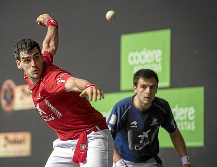 Porque su golpe, más bien la falta de él, ha sido el escudo del zaratamoztarra para restarse presión en las previas de sus partidos, pero al contrario que en buena parte de sus partidos de este torneo, en los que su saque-remate le ha permitido jugar casi siempre de cara, ayer le tocó defenderse ante un pelotari bastante más largo como Joseba Ezkurdia y lo hizo estupendamente durante todo el partido.
