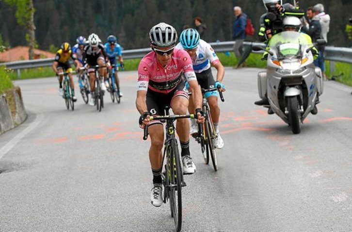 Atacó a 17 kilómetros de meta en el duro Costalissoio y sacó 41 segundos a Tom Dumoulin, 1:20 a un grupo con Pello Bilbao y Mikel Nieve, y 1:35 a Froome.